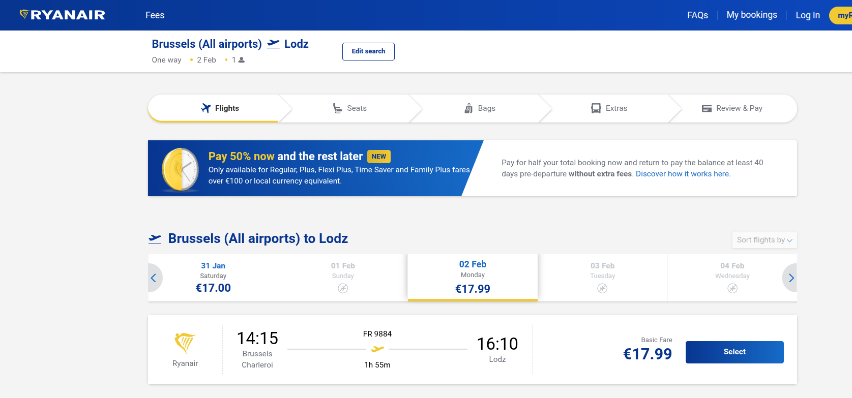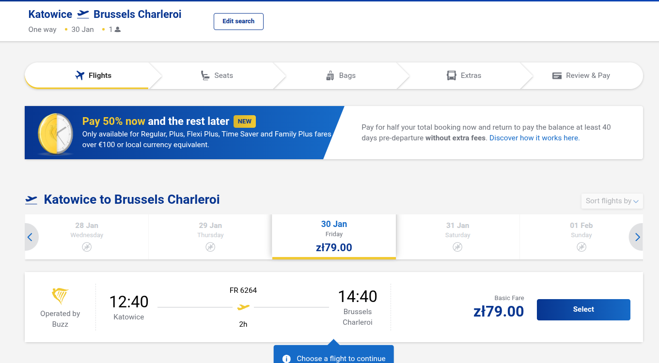 Tzn. powrotny, jak dobrze pamiętam, jest, ale do Brukseli trzeba kombinować albo przez Warszawę (ale tam lot był, jak dobrze pamiętam, wcześnie rano), albo przez Wrocław. Albo po prostu potłuc się pociągami.